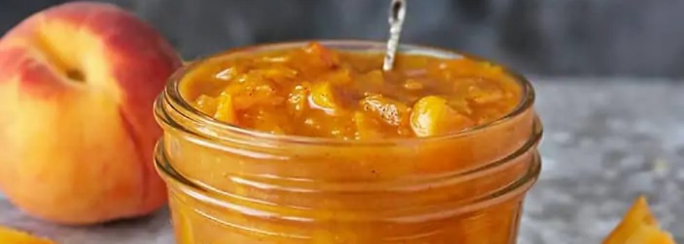 Serves 4 to 6 A fresh peach should be soft to the touch and eaten over the sink because it is so juicy. According to Ayurveda, peaches are good for those who suffer from loss of appetite due to excess heat in the system. This can come from any type of high pitta such as fever or a bladder infection but can be from something as simple as the annual end-of-the-summer rise in heat within the body. Peaches will calm excess vata or wind, but in excess can increase kapha or mucous. When in season, eating two or three peaches a week is good for everyone. Peaches can be used in fruit salad with nuts or seeds. They can also be used with cooked vegetables so here is an easy peach chutney recipe. Doshic Notes Vata :: – Pitta :: +- Kapha :: +-
